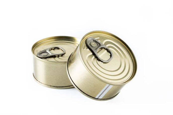 Various canned food in metal cans isolated on white background